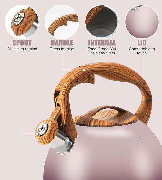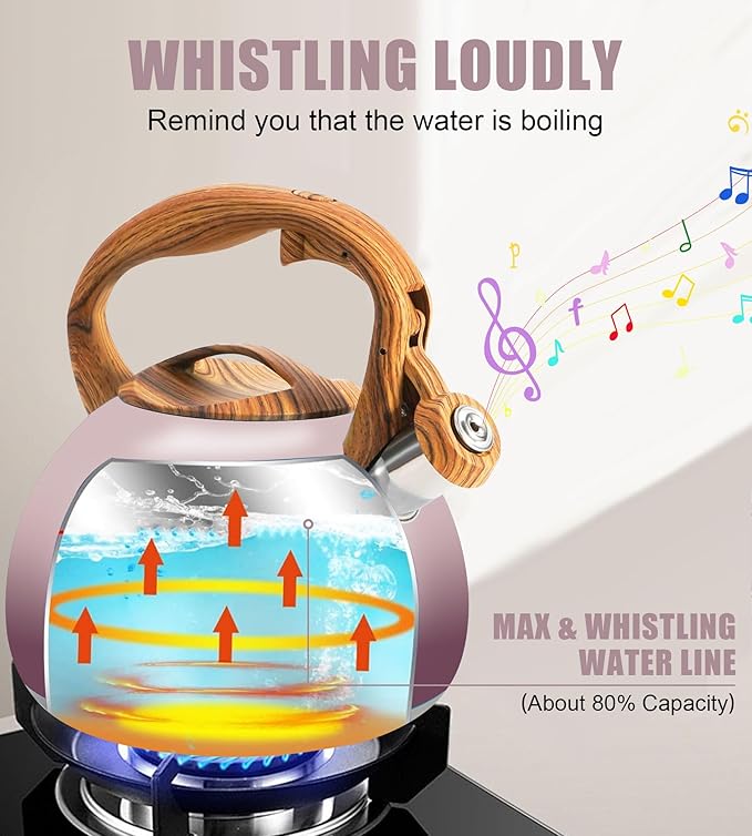 Tea Kettle for Stove Top, 3.2QT Whistling Tea Pots with Wood Parttern Handle, Stainless Steel Teapot for Home and Kitchen (Purple Gradient)