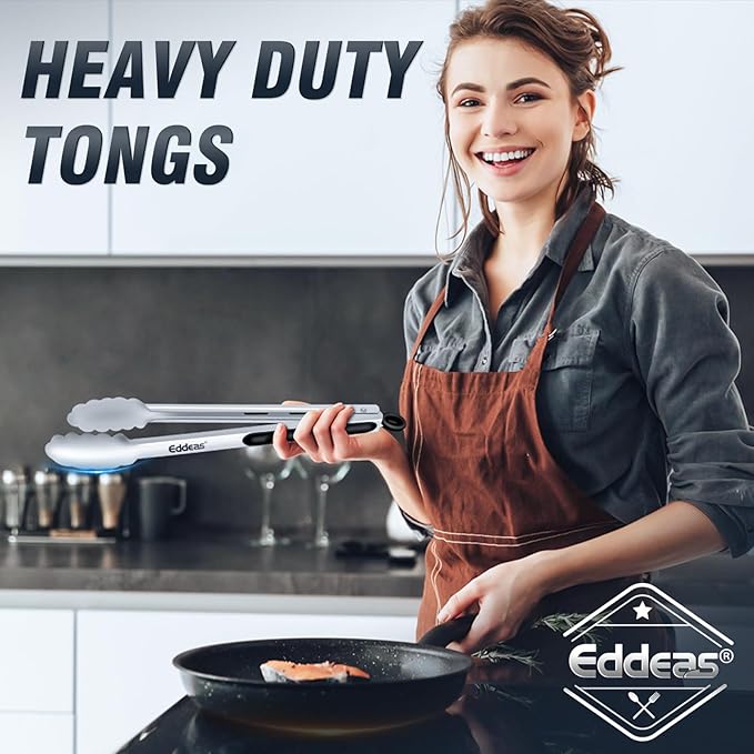 About This FOOD-GRADE STAINLESS STEEL - Eddeas kitchen tongs for cooking are made of 1mm thick food-grade stainless steel in... Read more