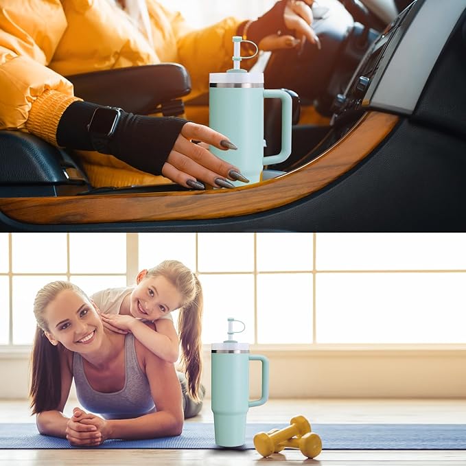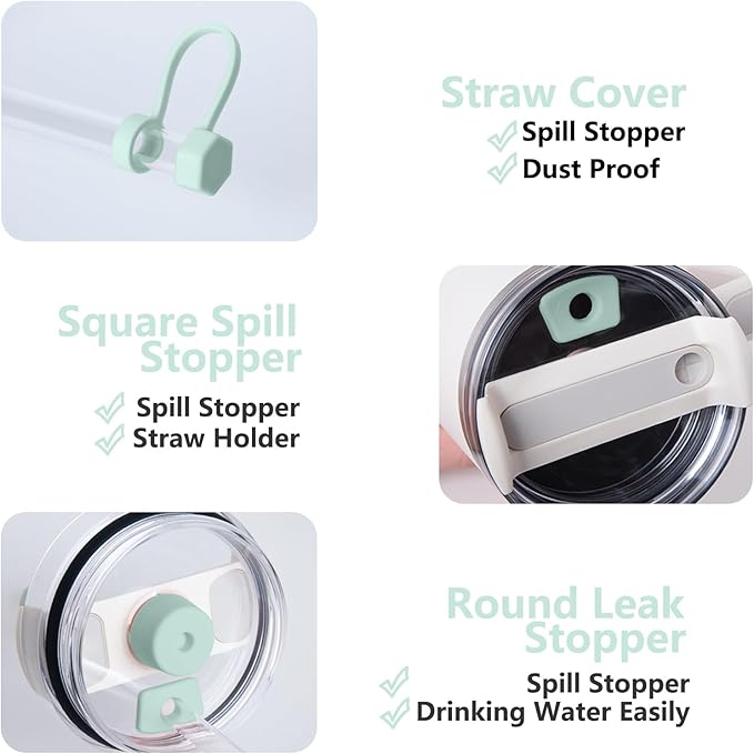 Silicone Spill Stopper Set Compatible with Stanley Cup 2.0 30oz & 40oz with Straw Cover (Set of 2, Seafoam)