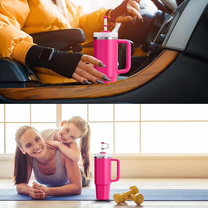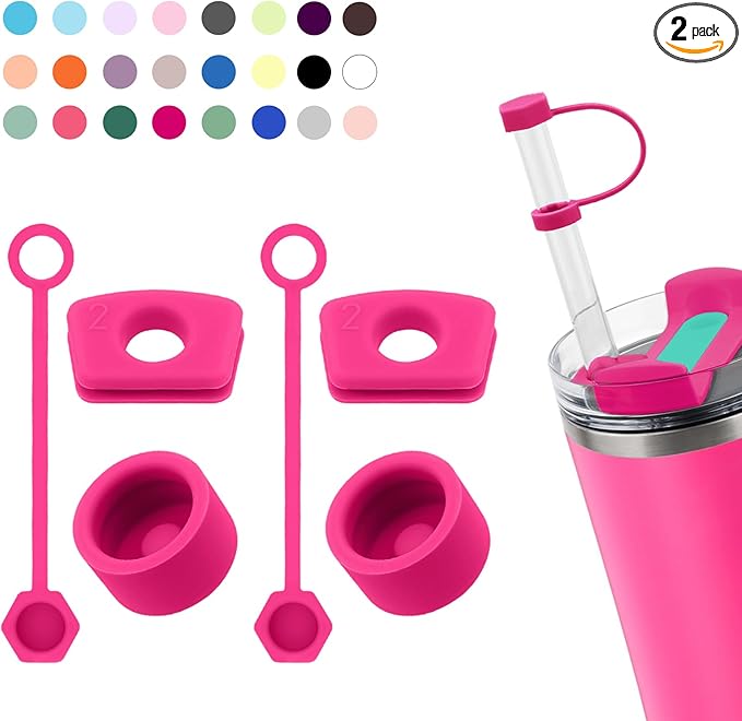 Silicone Spill Stopper Set Compatible with Stanley Cup 2.0 30oz & 40oz with Straw Cover (Set of 2, Passion Pink)
