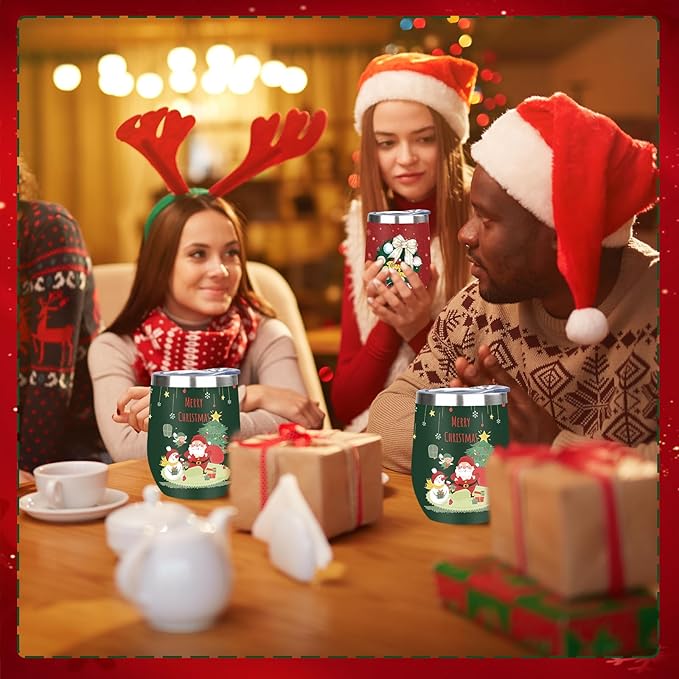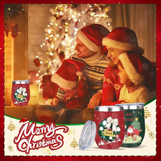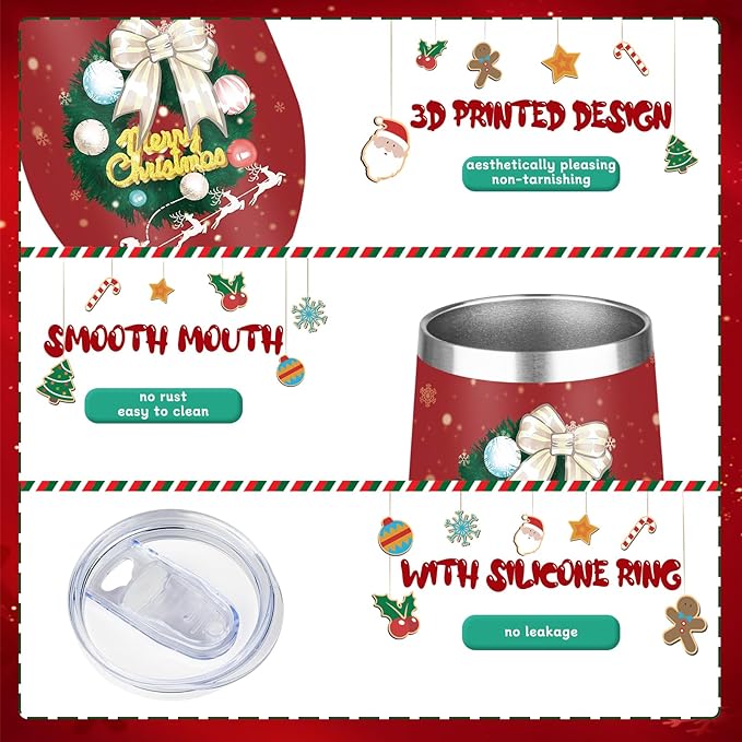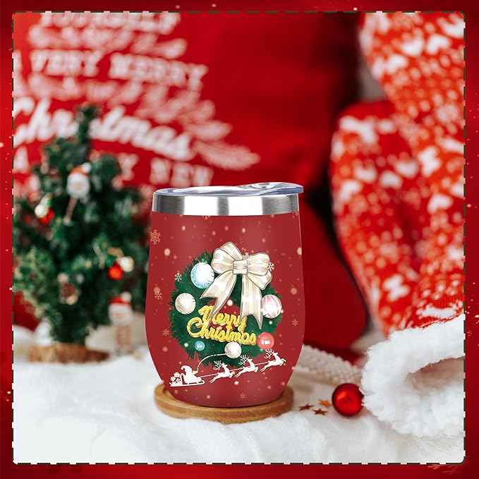 MEZMUT Christmas Wine Tumbler Unique Mom Christmas Gifts for Women Her 12oz Stainless Steel Wine Glass Christmas Cups Insulated Tumblers with Lids&Straws Double Wall Vacuum Coffee Tumbler Mugs