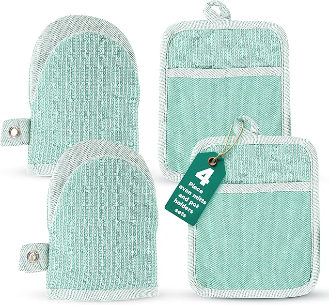 Casa Platino Heat Resistant Oven Mitts & Pot Holders, 4-Piece – Oven Mitt for Baking & BBQ, Potholders for Kitchens – Withstands Heat Up to 500°F, Soft, Durable & Non-Slip – Sage