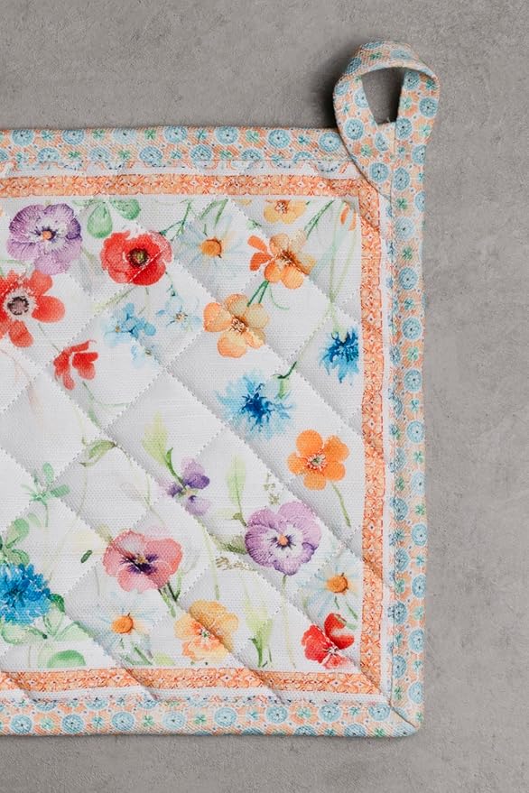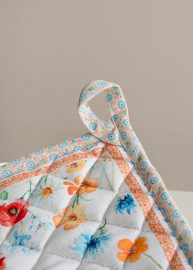 Maison d' Hermine Pot Holders Set 100% Cotton Heat Resistant Potholders 8" x 8" Hot Pads with Loop BBQ, Cooking, Baking, Grilling, Kitchen, Handling Hot Pans Spring/Summer (Pack of 2, Summer Whisper)