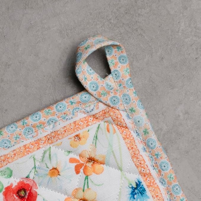 Maison d' Hermine Pot Holders 100% Cotton Heat Resistant Potholders 8" x 8" Hot Pads with Loop BBQ, Cooking, Baking, Grilling, Kitchen, Handling Hot Pans Spring/Summer (Pack of 1, Summer Whisper)