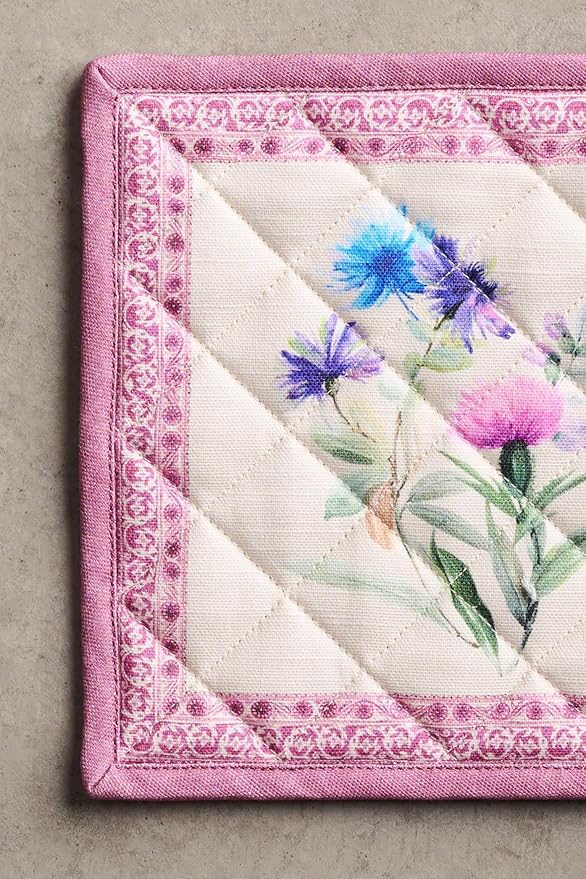Maison d' Hermine Pot Holders 100% Cotton Heat Resistant Potholders 8" x 8" Hot Pads with Loop BBQ, Cooking, Baking, Grilling, Kitchen, Handling Hot Pans Spring/Summer (Pack of 1, Chardon)