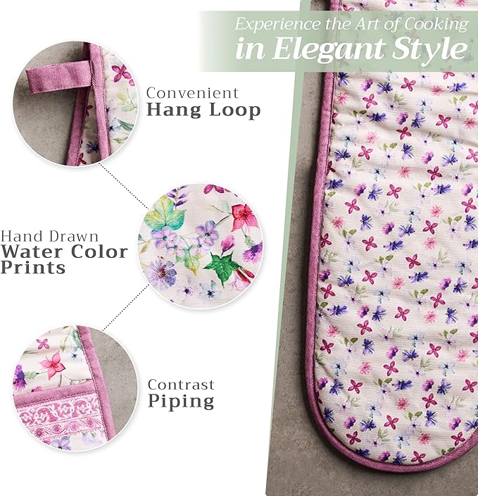 About This Package includes: Includes 1 double oven mitt sized 7"x35". Perfect for handling hot cookware safely while adding a... Read more