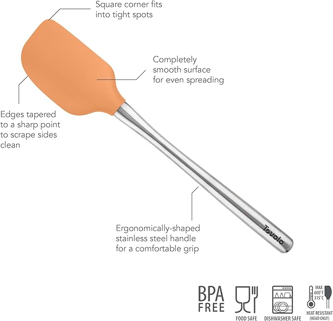 Tovolo Flex-Core Stainless Steel Handled Spatula Heat-Resistant & BPA-Free Silicone Turner Head, Cast Iron & Non-Stick Cookware, Dishwasher-Safe, Apricot