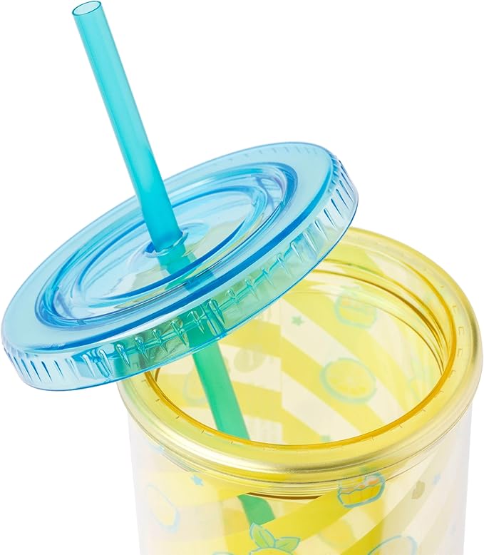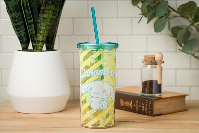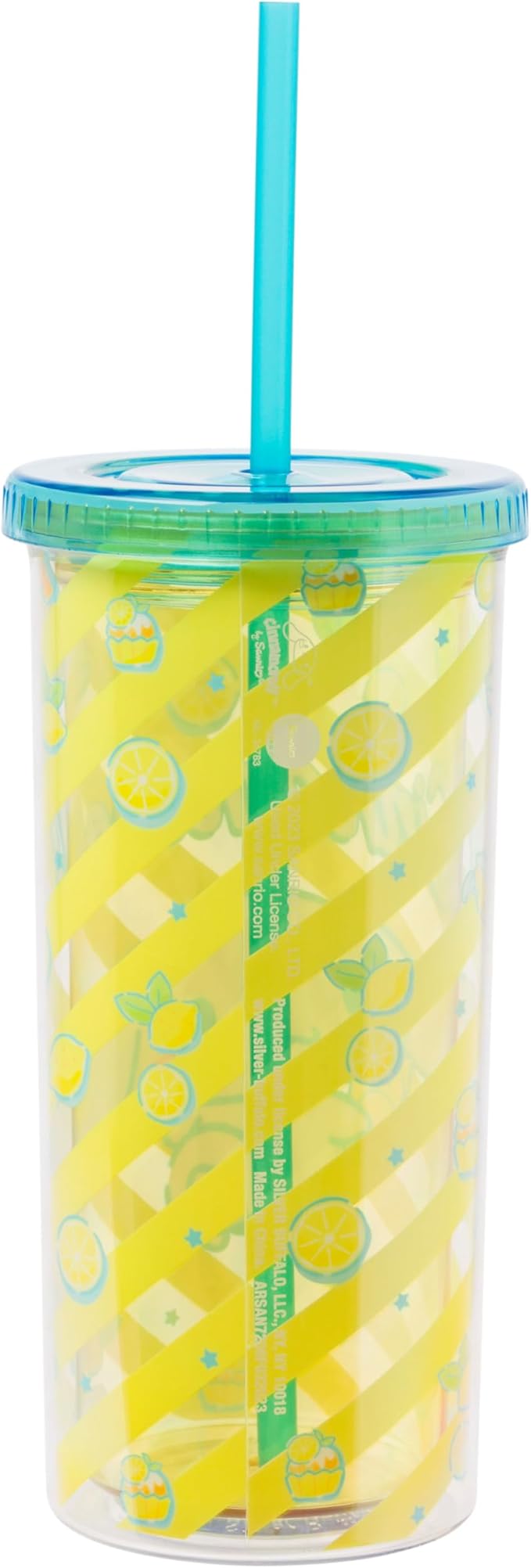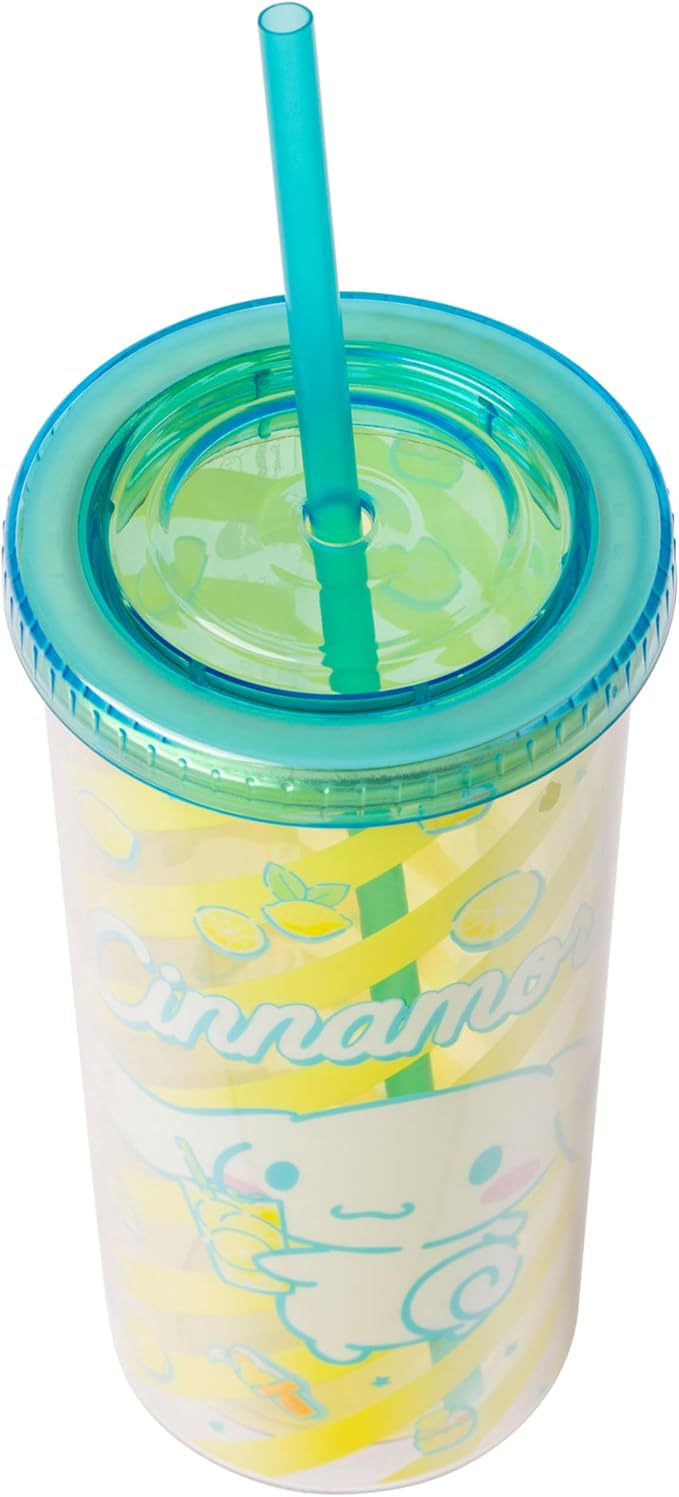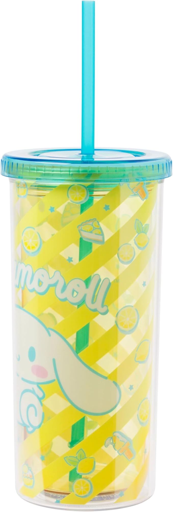 Silver Buffalo Sanrio Hello Kitty and Friends Cinnamoroll Lemons and Lemonade Plastic Cold Cup with Lid and Straw, 20 Ounces