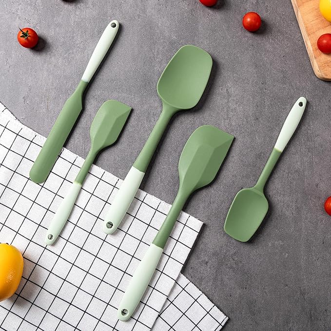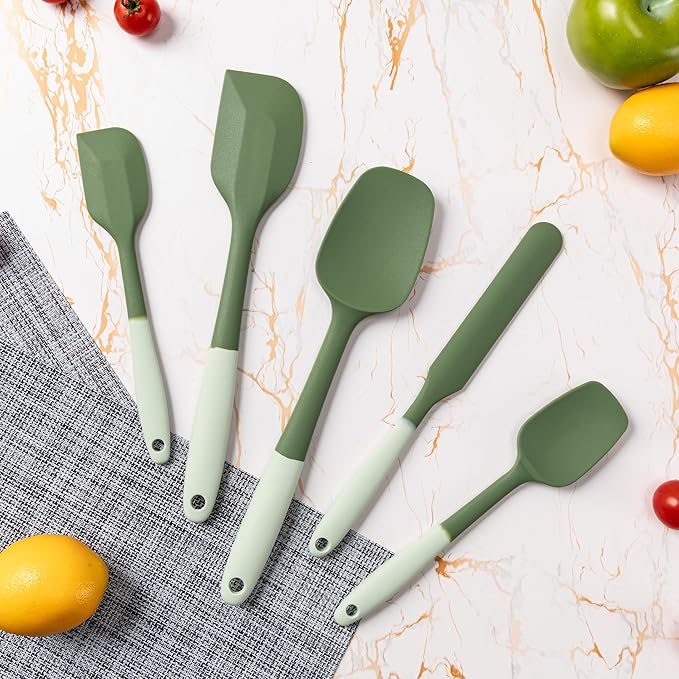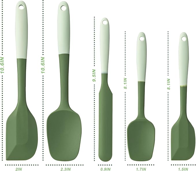 Silicone Spatula Set, 5 Piece Food Grade Rubber Spatulas for Baking, Cooking, and Mixing High Heat Resistant Non Stick Dishwasher Safe BPA-Free (Two colors - Green)