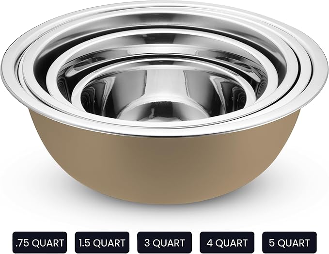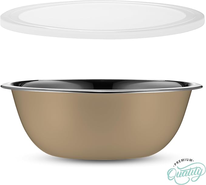 WHYSKO Stainless Steel Mixing Bowl Set, 10 Piece Stainless Steel Mixing Bowls with Lids Set for Food Prep Storage and Serving, Dishwasher Safe for Kitchen Baking Cooking, Khaki
