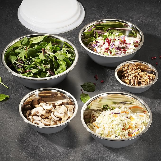 WHYSKO Stainless Steel Mixing Bowl Set, 10 Piece Stainless Steel Mixing Bowls with Lids Set for Food Prep Storage and Serving, Dishwasher Safe for Kitchen Baking Cooking, Grey