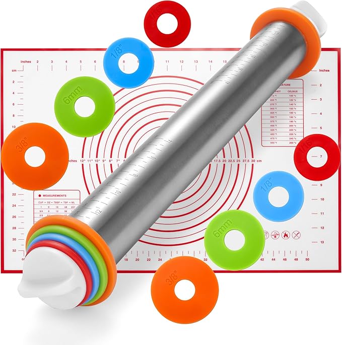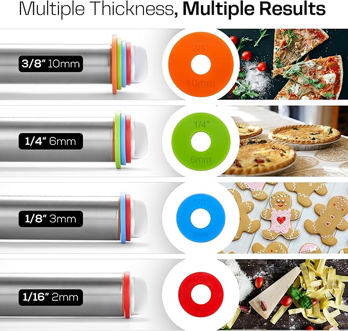 About This Custom Thickness Control – Includes 4 removable rings (1/16", 1/8", 1/4", 3/8") so you can roll dough to... Read more