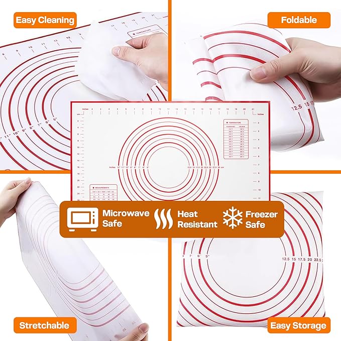 17 Inch Adjustable Stainless Steel Rolling Pin with 4 Thickness Rings & Non-Stick Pastry Mat – Professional Dough Roller for Pizza, Cookies, Pasta & Pies - Red