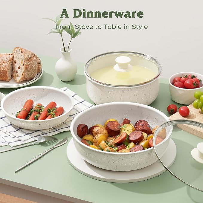 About This Complete Set: SODAY 18 pieces cookware set includes 1pcs 10.6" Saute Pan,1pcs 8&10.6"Frying Pans, 1pcs 2QT Sauce Pan... Read more
