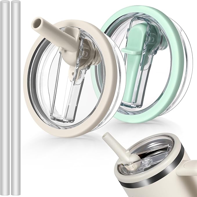 40oz Flip Straw Leak Proof Lid for Stanley H2.0 Quencher Protour Tumbler, 2 Pack Spill Proof Lid Replacement Straw Cover Top for 40 OZ Stanley Cup Accessories (Beige, Matcha)