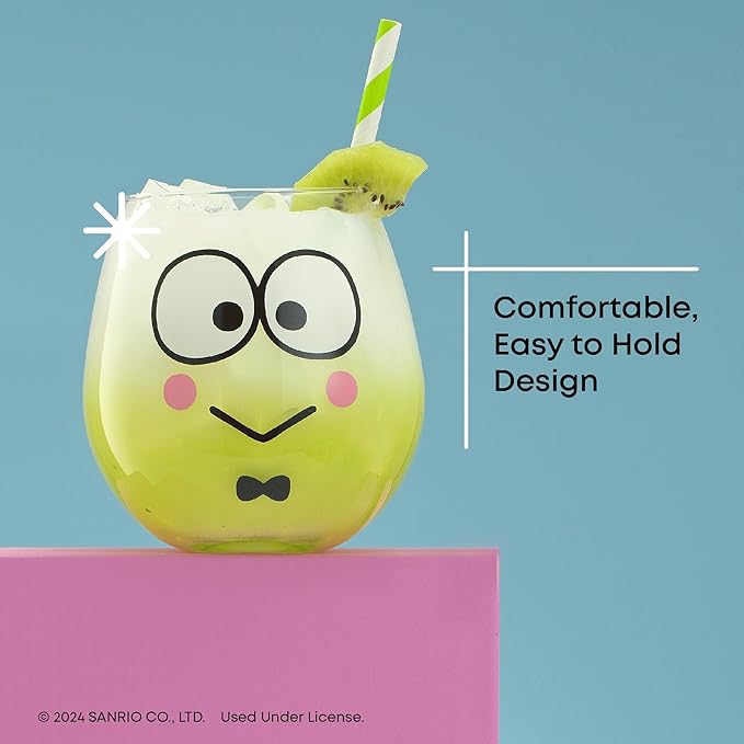 JoyJolt Sanrio Hello Kitty & Friends Hello Sippy Drinking Glasses, 15 oz Stemless Glass Cups Set of 4 ft Hello Kitty Keroppi My Melody Pompompurin, Cute Glasses for Water, Juice, Kawaii Tumbler