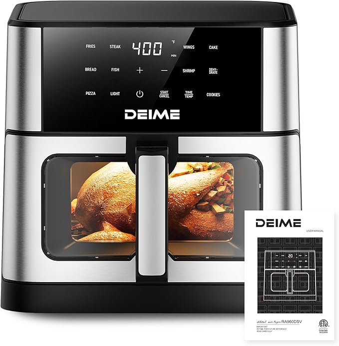 DEIME Air Fryer 10.2 QT Oilless 1700W Large Capacity Oven Air Fryers Healthy Cooker with 10 Preset, Large AirFryer for Families Visual Cooking Window, Non-Stick Basket, Included Recipe