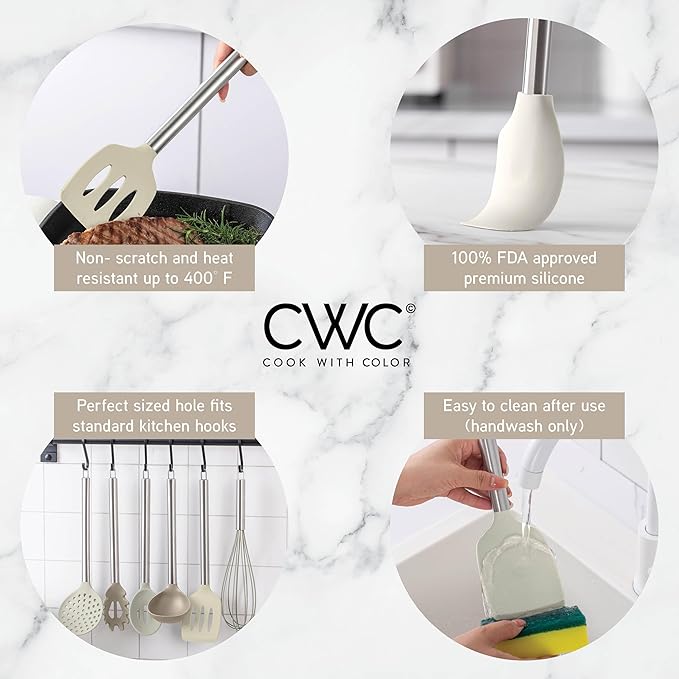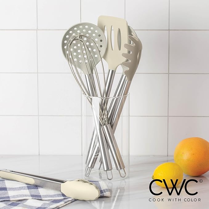 COOK WITH COLOR Silicone Cooking Utensils, Kitchen Utensil Set, Easy to Clean Silicone Kitchen Utensils, Cooking Utensils for Nonstick Cookware, Kitchen Gadgets Set, 10 Pieces, Brown