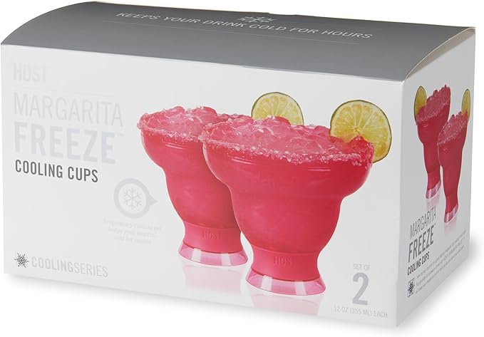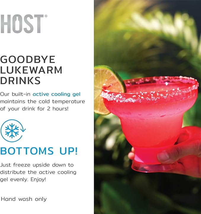 HOST FREEZE Margarita Cocktail Glasses, Frozen Cup Double Wall Plastic Margarita Glasses Drinking Set Modern Drinking Glasses 12oz Punch Pink Set of 2