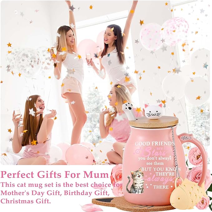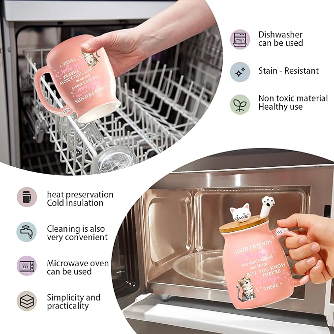 Friendship Gifts for Women Cat Mug Unique Birthday Gifts for Women Cute Stuff Kawaii Tea Cup Christmas Gift Bestie Friend Gift For Woman Cat Lovers hemed Gifts for BFF Coworker Sister