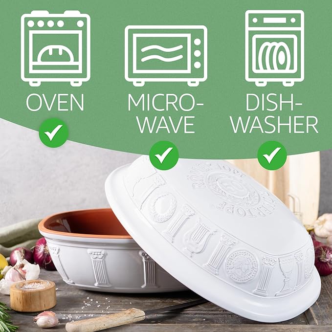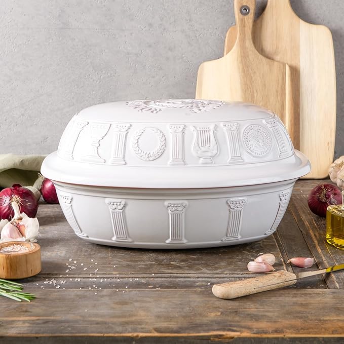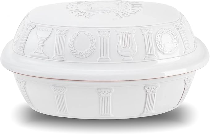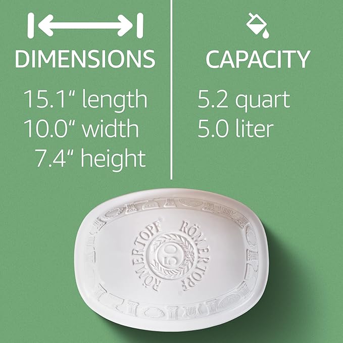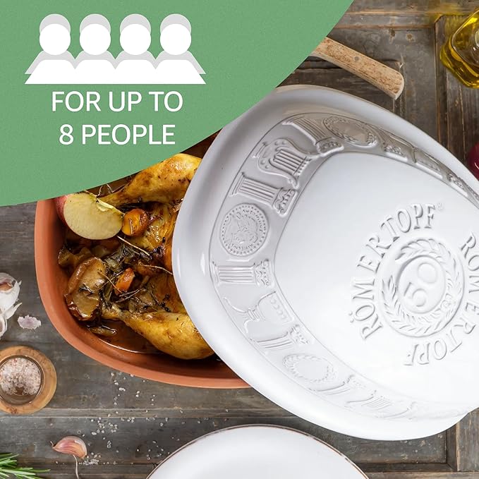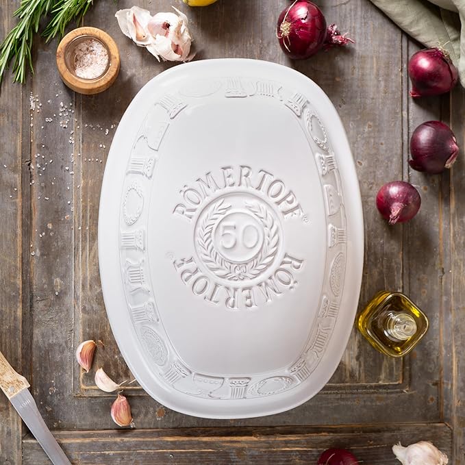 Romertopf Clay Roaster | 50 Years Anniversary Edition | Non-Stick Dutch Oven | Healthy Pot Cooking | Clay Baker | Versatile Cooking Vessel - 5.2 Quarts (5 Liters) for up to 8 people - White