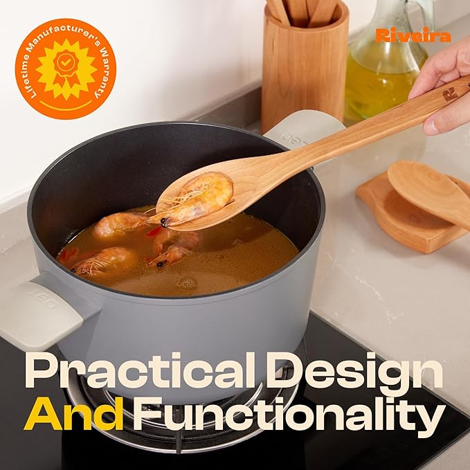Riveira Cherry Wooden Spoons for Cooking Set of 3 – Natural Cherry Wooden Cooking Utensils, Wooden Spatula, Wooden Spoon - Premium Quality Wooden Utensil Set for Non-Toxic Cooking