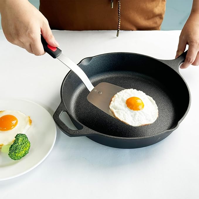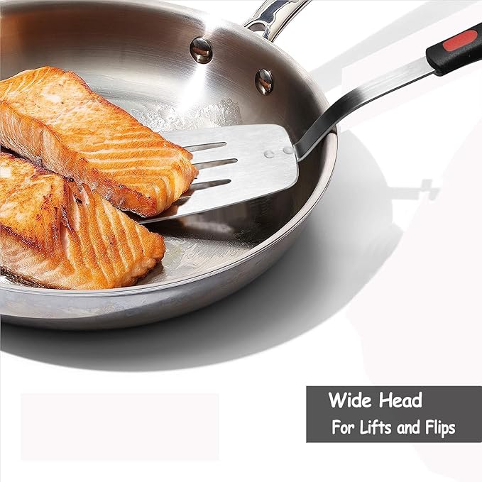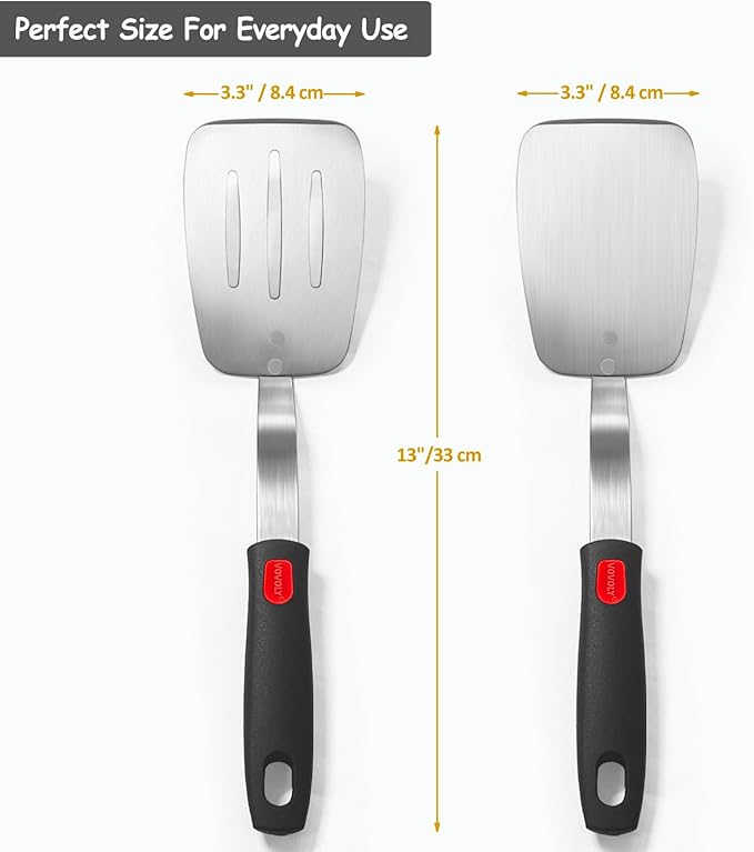 Stainless Steel Spatula Turner Set, 2-Pack Metal Spatula for Kitchen Use,VOVOLY Heavy Duty Cooking Turners, Wide Blade with Beveled Edge, Heat Resistant Silicone Handle, Dishwasher Safe