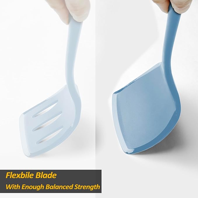 About This Upgraded & ERGONOMIC Handle:This silicone spatula turner set have customized ergonomic arc designed handle, 1.5" longer and more... Read more