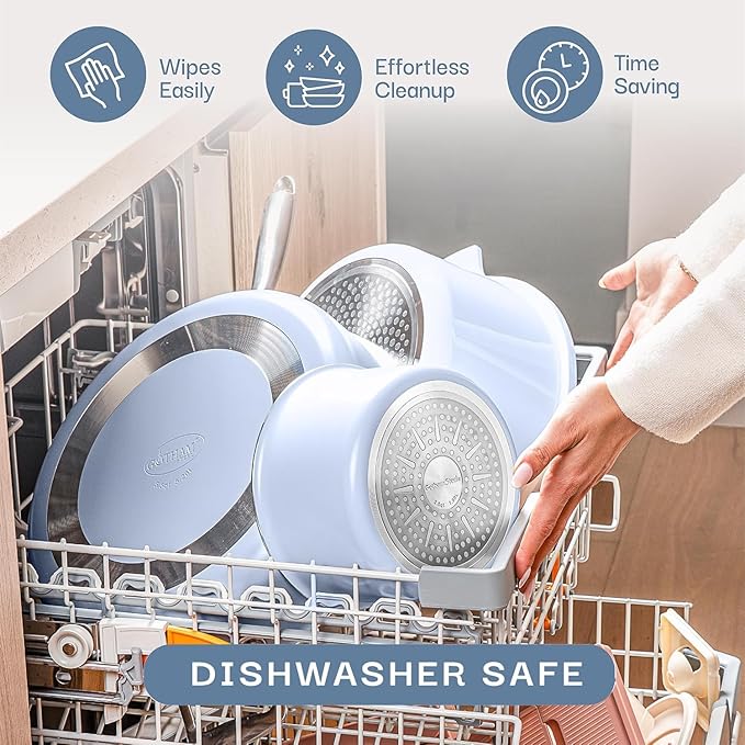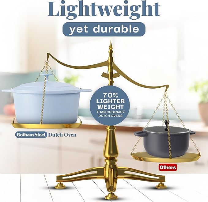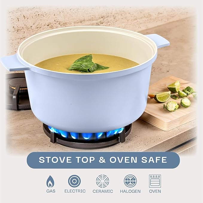 Gotham Steel 5 Qt Lightweight Ceramic Dutch Oven Pot with Lid, Nonstick Sourdough Dutch Oven for Bread Baking, 10 in 1 Stock Pot Ovens for Pasta, Spaghetti, Bread and More, Pots for Cooking