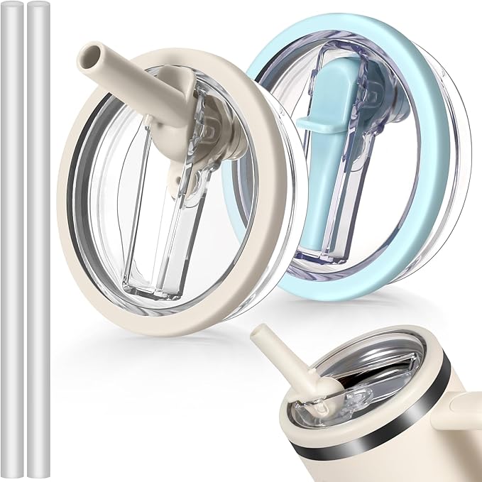 40oz Flip Straw Leak Proof Lid for Stanley H2.0 Quencher Protour Tumbler, 2 Pack Spill Proof Lid Replacement Straw Cover Top for 40 OZ Stanley Cup Accessories (Beige, SkyBlue)