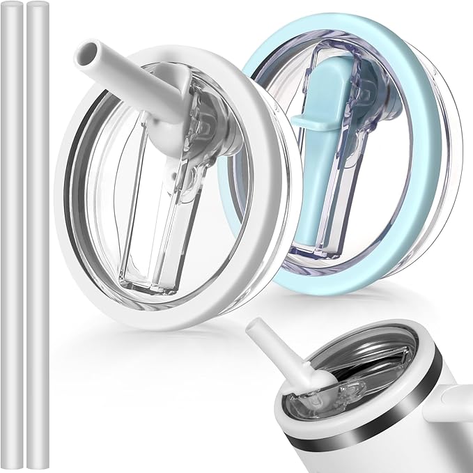 40oz Flip Straw Leak Proof Lid for Stanley H2.0 Quencher Protour Tumbler, 2 Pack Spill Proof Lid Replacement Straw Cover Top for 40 OZ Stanley Cup Accessories (White, SkyBlue)