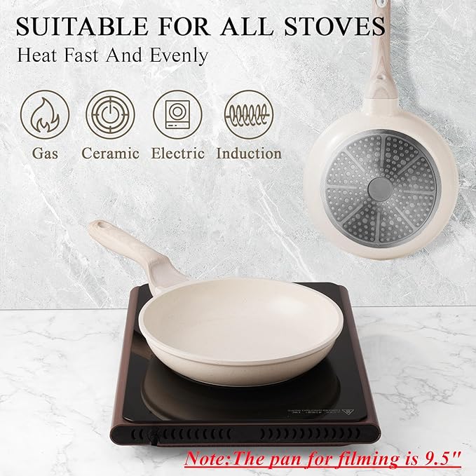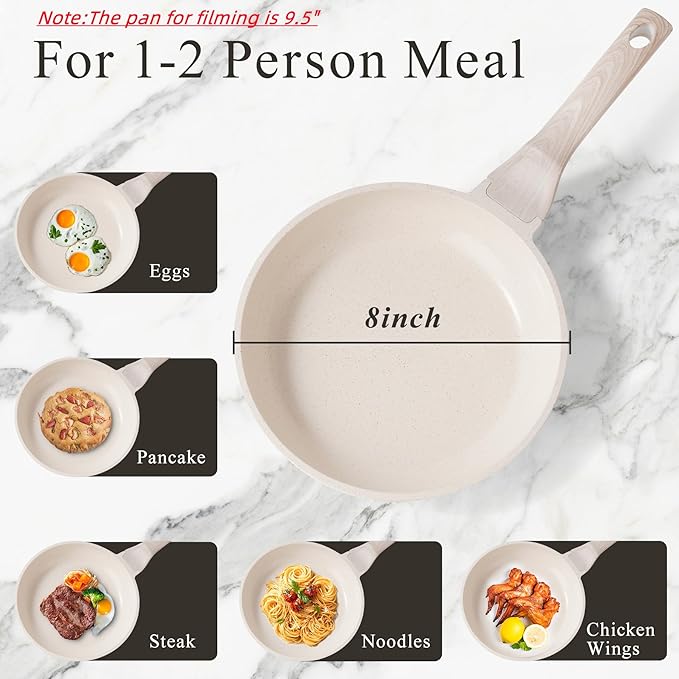 Induction Ceramic Nonstick Frying Pan,Light Weight Skillet,Healthy Non Toxic Omelet Pan,All Stoves Compatible Egg Pan (white, 8inch)