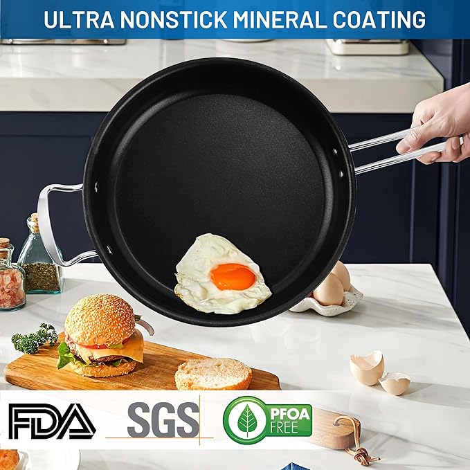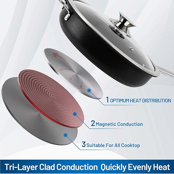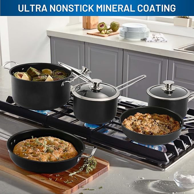 Stainless Steel pots and pans set, 10 Piece Nonstick Kitchen Induction Cookware Set,Works with Induction/Electric and Gas Cooktops, Nonstick, Dishwasher, Black