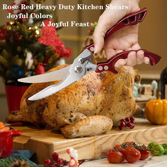 Heavy Duty Kitchen Shears by ANDONG, Kitchen Scissors,Stainless Steel Poultry Shears Heavy Duty Professional, Red