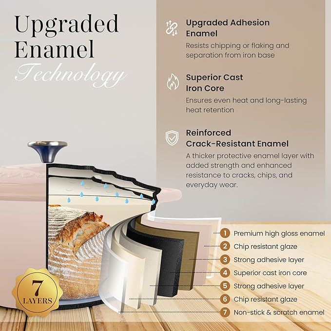 Nuovva Enamelled Cast Iron Dutch Oven Pot with Lid 6.4 Quart Non Stick Casserole Pot – Heavy Duty & Oven Safe up to 500° F for Bread Baking, Braising, Stews, Roasting – 28cm Oyster