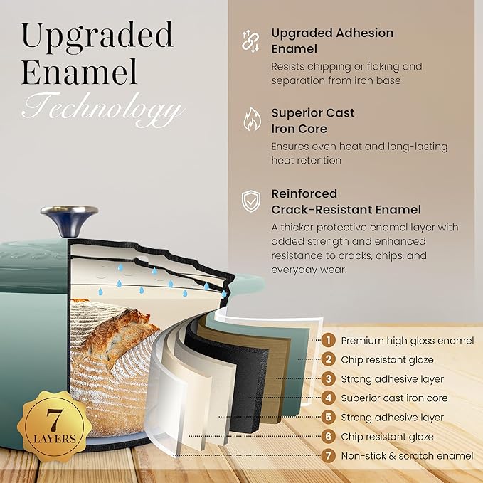 Nuovva Enamelled Cast Iron Dutch Oven Pot with Lid 6.4 Quart Non Stick Casserole Pot – Heavy Duty & Oven Safe up to 500° F for Bread Baking, Braising, Stews, Roasting – 28cm Sea Salt