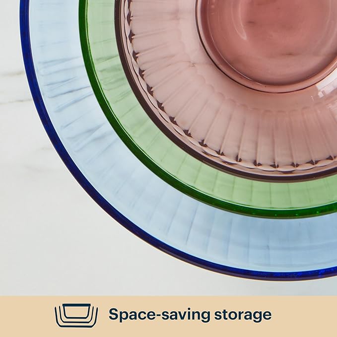 Pyrex Colors Tinted (3-Pack) Sculpted Tinted Unlidded Small/Medium/Large Glass Mixing Bowls, Nesting Space Saving Set of Bowls For Prepping and Baking, 1.3QT, 2.3QT & 4.5QT