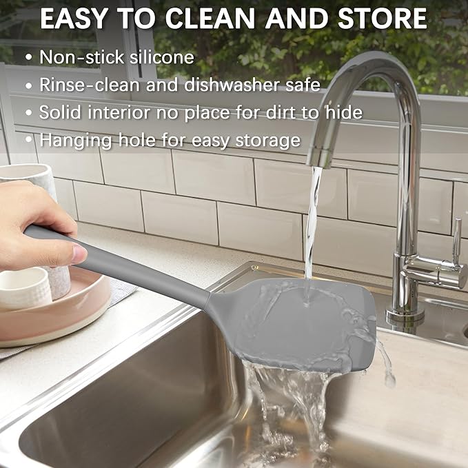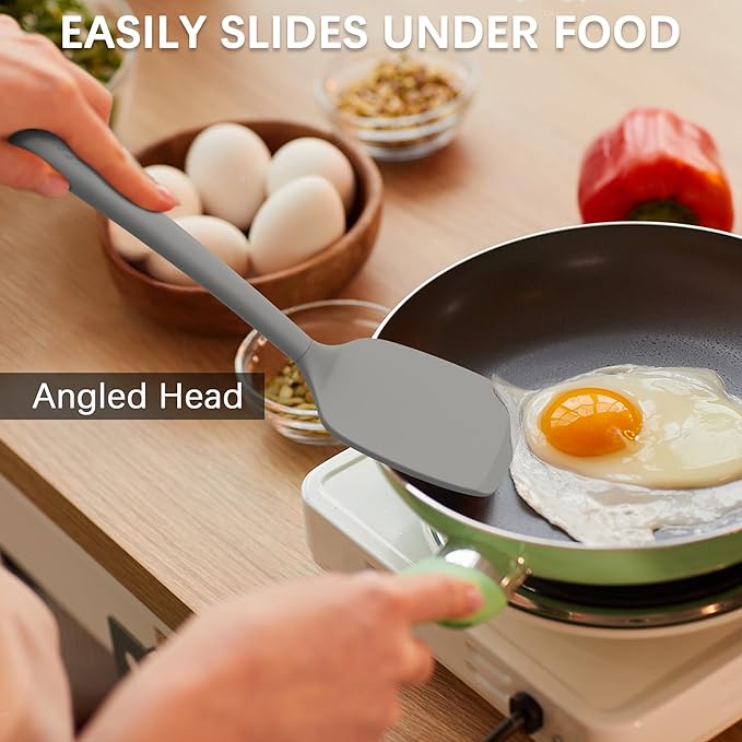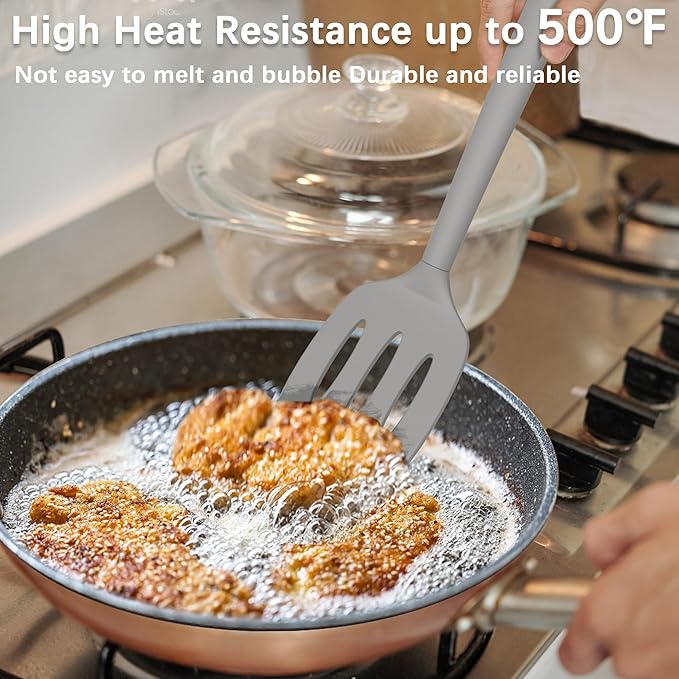 Coukre 2 Pack Silicone Spatula Set, High Heat Resistant, BPA Free Kitchen Spatula, Solid & Slotted Turner for Non-Stick Pans, Sautéing, and Flipping (2, PureGray)