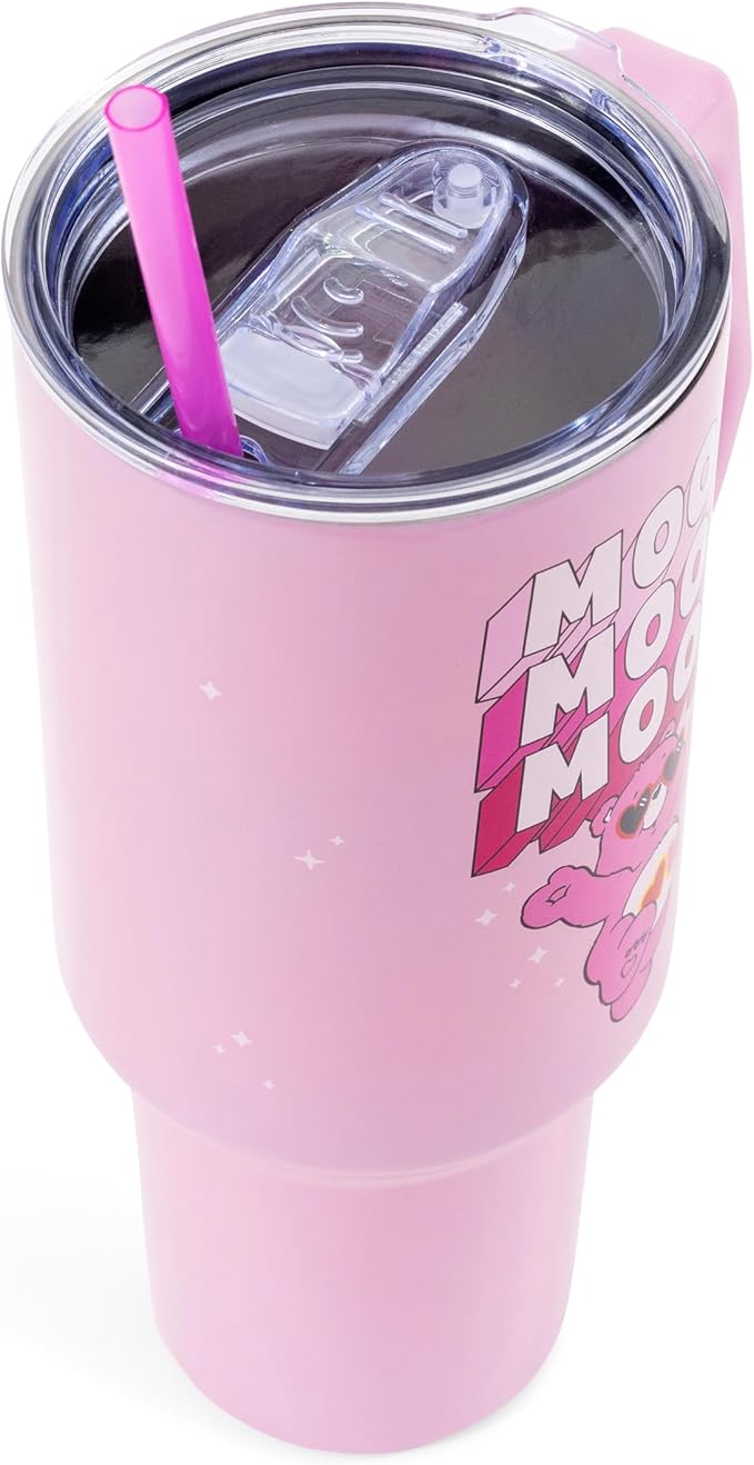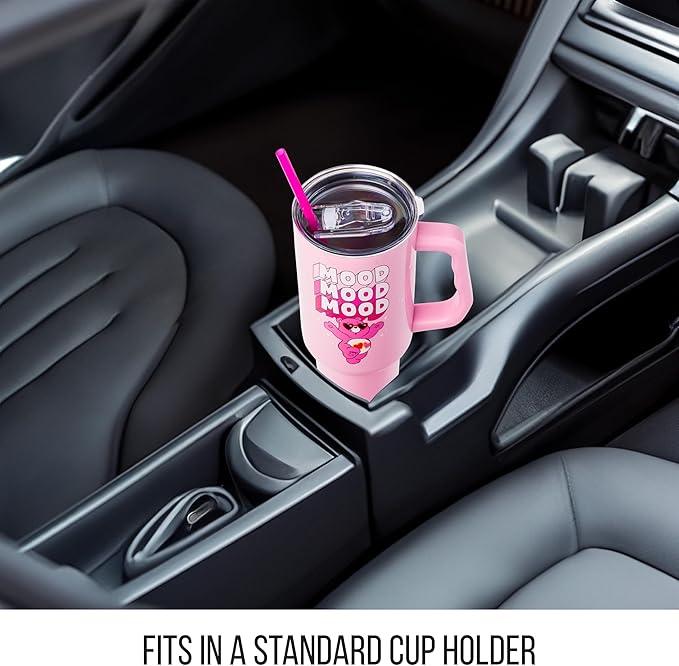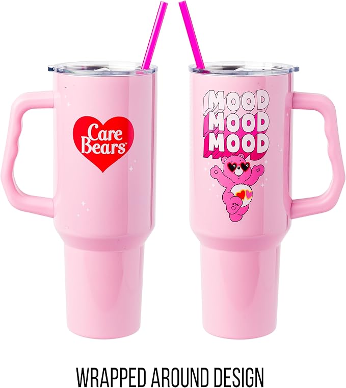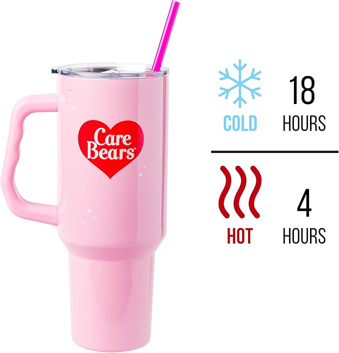 Silver Buffalo Care Bears “Mood” Stainless Steel Tumbler with Handle Featuring Love-A-Lot Bear, Fits in Standard Cup Holder, 40 Ounces