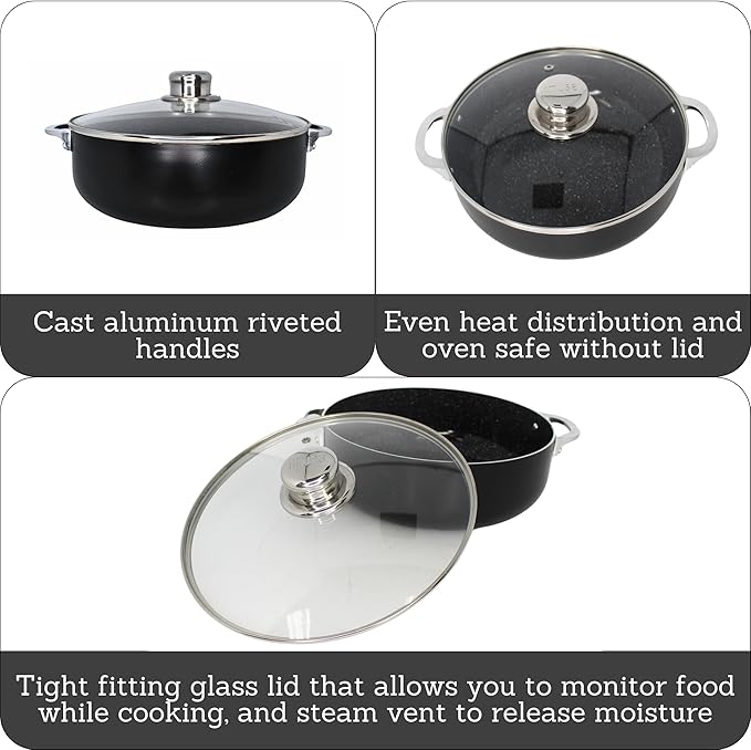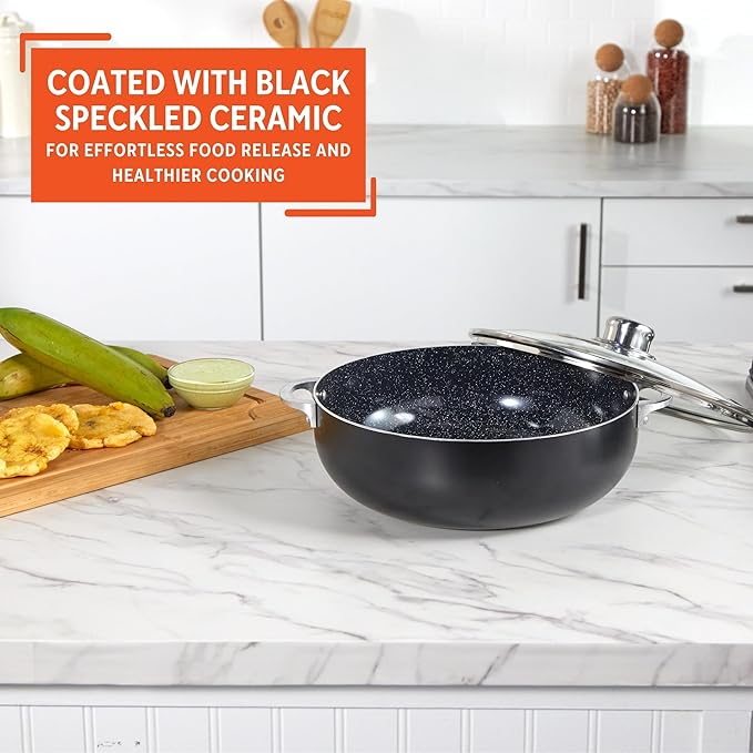 IMUSA 4.4Qt Bistro Ceramic Nonstick Caldero/Dutch Oven with Glass Lid, Black