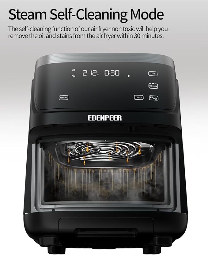 12-IN-1 Large Air Fryer, Non Toxic Steam Air Fryers with Superior Airflow, Self-Cleaning Smart Digital Air Fryer, Air Fry, Roast, Reheat, Dehydrate, Air Crisp Technology with 420F, 7.5 QT