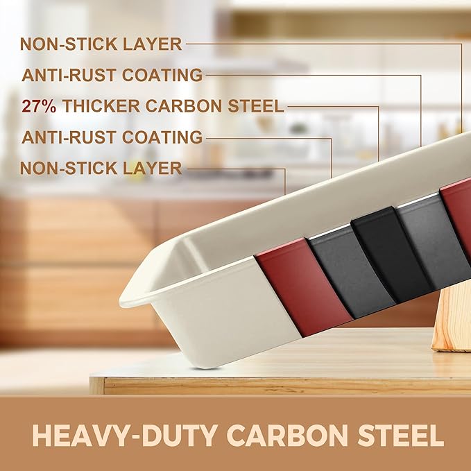 HONGBAKE Bakeware Sets, Baking Pans Set, Nonstick Oven Pan for Kitchen with Wider Grips, 10-Piece Including Rack, Cookie Sheet, Cake Pans, Loaf Pan, Muffin Pan, Pizza Pan -Cream