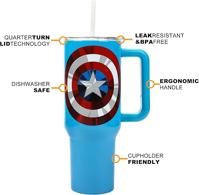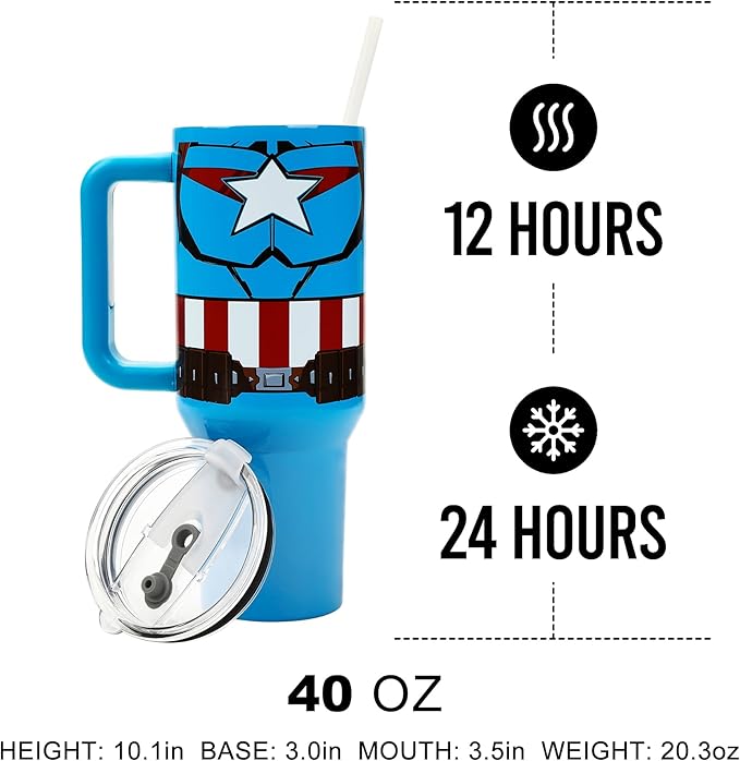 Bioworld Marvel Captain America Costume & Shield Blue 40 Oz Stainless Steel Tumbler