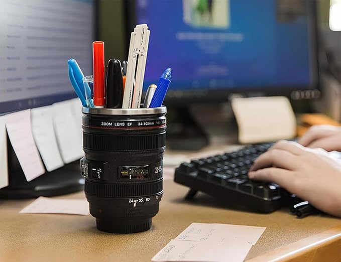 Camera Lens Coffee Mug with Slider Lid - Unique Photographer Gifts for Men & Women, Camera Mug Fun Shutterbug Gift Idea