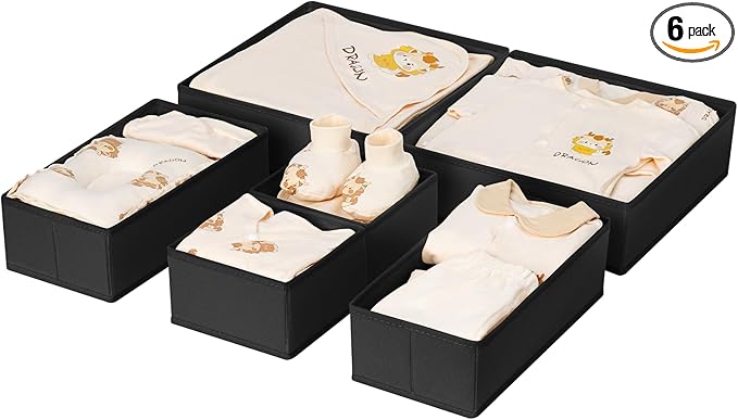 DIMJ Drawer Organizer Clothes 6 Pack - Foldable Baby & Nursery Organization Dresser Dividers for Bedroom, Closet - Black