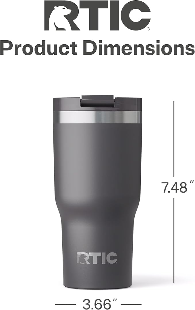 RTIC 20oz Essential Tumbler with Lid, Ceramic Lined, Insulated, Stainless Steel, Metal, Double Wall Vacuum-Insulation, Travel Cup for Iced Coffee, Tea, Hot and Cold Drink, Graphite