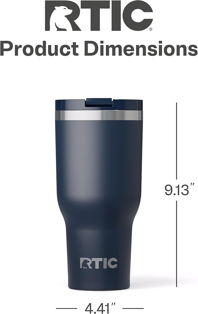RTIC 40oz Essential Tumbler with Lid, Ceramic Lined, Insulated, Stainless Steel, Metal, Double Wall Vacuum-Insulation, Travel Cup for Iced Coffee, Tea, Hot and Cold Drink, Navy