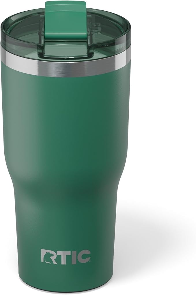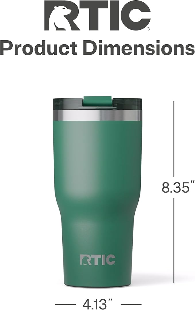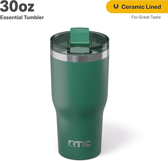 RTIC 30oz Essential Tumbler with Lid, Ceramic Lined, Insulated, Stainless Steel, Metal, Double Wall Vacuum-Insulation, Travel Cup for Iced Coffee, Tea, Hot and Cold Drink, Pine Tree