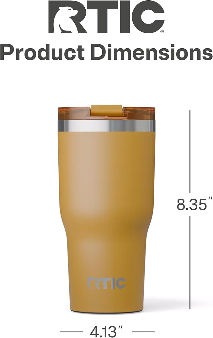 RTIC 30oz Essential Tumbler with Lid, Ceramic Lined, Insulated, Stainless Steel, Metal, Double Wall Vacuum-Insulation, Travel Cup for Iced Coffee, Tea, Hot and Cold Drink, Harvest