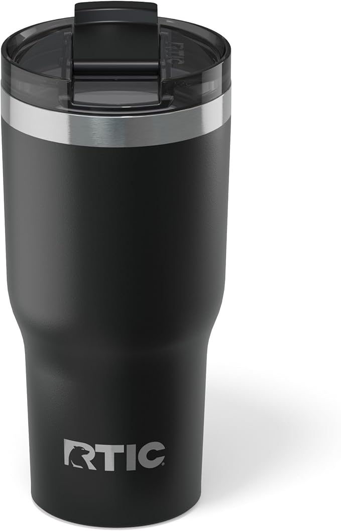 RTIC 20oz Essential Tumbler with Lid, Ceramic Lined, Insulated, Stainless Steel, Metal, Double Wall Vacuum-Insulation, Travel Cup for Iced Coffee, Tea, Hot and Cold Drink, Black